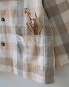 Oversized drop shoulder shirt with a breezy cuban collar. The pocket is adorned with hand done chain stitch embroidery.