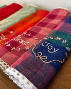 Introducing our lovingly crafted kerchives — handwoven from soft, breathable cotton and embroidered with the sweetest blessings and affirmations for little ones. Each kerchive is made with care and intention, transforming a simple textile into a keepsake full of warmth and love.